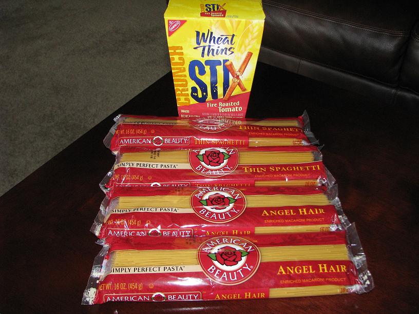 4 American Beauty pastas, 1 Wheat Thin Stix – ALL FOR .49 CENTS!