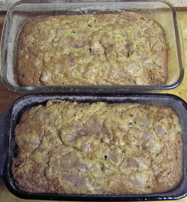 Grease four loaf pans and dust with the cinnamon / sugar mixture