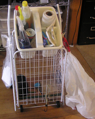 Oh and one last tip. EMPTY the cart and hang it back up when you’re done. I’ve spent plenty of time looking for something I put in that cart. I just rolled the thing out the garage and dumped it off without emptying it first which is All too tempting to do. But be sure to allot enough time to empty it out and put stuff away after your last room.