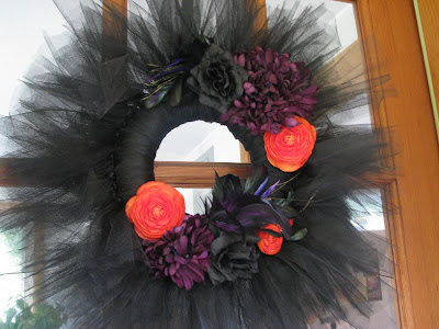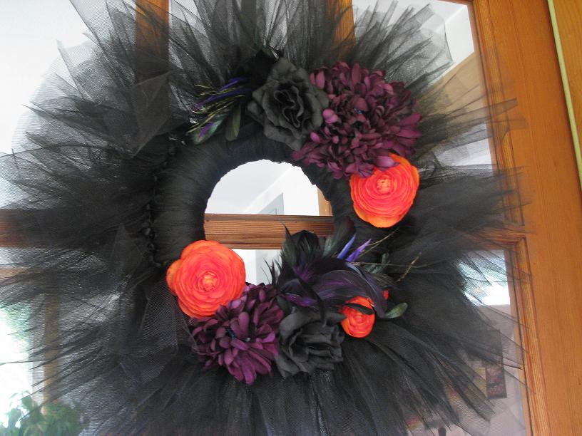 Isn’t this gorgeous!?  I found the ‘how to’ for this super simple tulle Halloween wreath on the ourbestbites website. (You can go there and check it out, but you’ve got to promise to come back, ok?)  Here’s what you need: