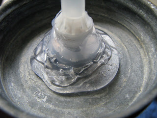Using scissors, trim off the excess length of the straw part of the pump so that it is about 1/4″ from the bottom of the jar –