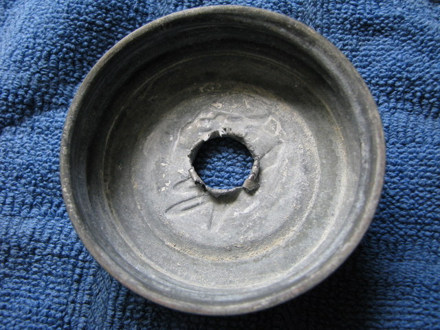 Carefully remove the broken ceramic from underneath the lid (it can cut you).  I used the nail to help pry out the pieces –