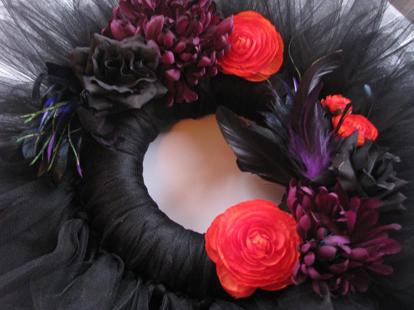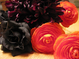 Various faux flowers – I used purple mums, black roses and orange raniculus