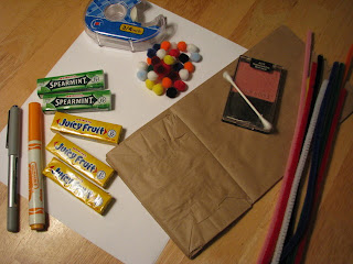 This is a really fun, inexpensive holiday craft that your kids can help you with and…you probably have most of the supplies already.  These adorable snowmen and reindeer have packs of gum inside. My daughter made these once for a holiday bazaar and sold over a hundred of them at $1 each!  These are perfect little gifts for students if you are a teacher, or teach a Sunday school class because you can make a bunch fairly quickly.  I’ve given them to my bus driver, to the kid who bagged my groceries, the FedEx delivery guy, and to friends who drop by.  Finding the right size pack of gum is getting a little tricky; seems most of the gum companies have moved to the flatter packages.  I found the right size at the dollar store in packages of four for $1.